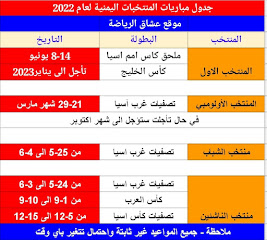 جدول مباريات المنتخب اليمني للناشئين والشباب والألمبي والأول في جميع البطولات