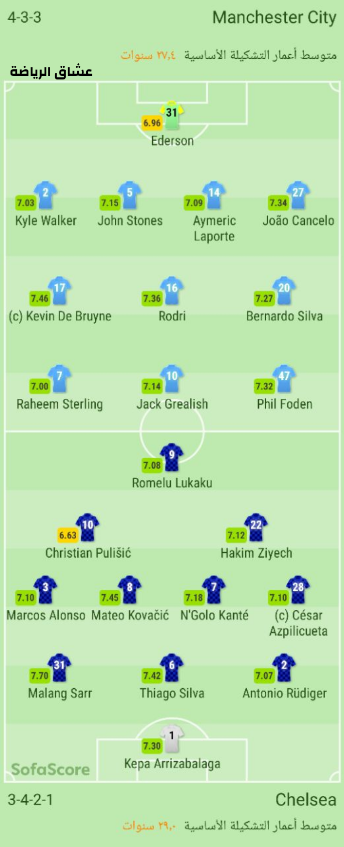 | التشكيلة المتوقعة لمباراة اليوم بين مانشسترسيتي وتشيلسي |