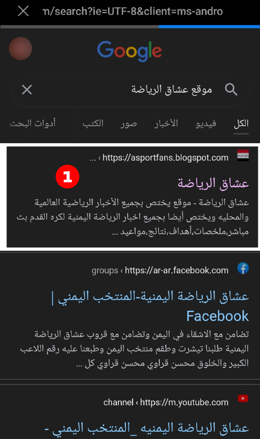 الطريقة الاولى هو البحث عن طريق متصفح جوجل والبحث عن موقع عشاق الرياضة ثم ادخل على الموقع.