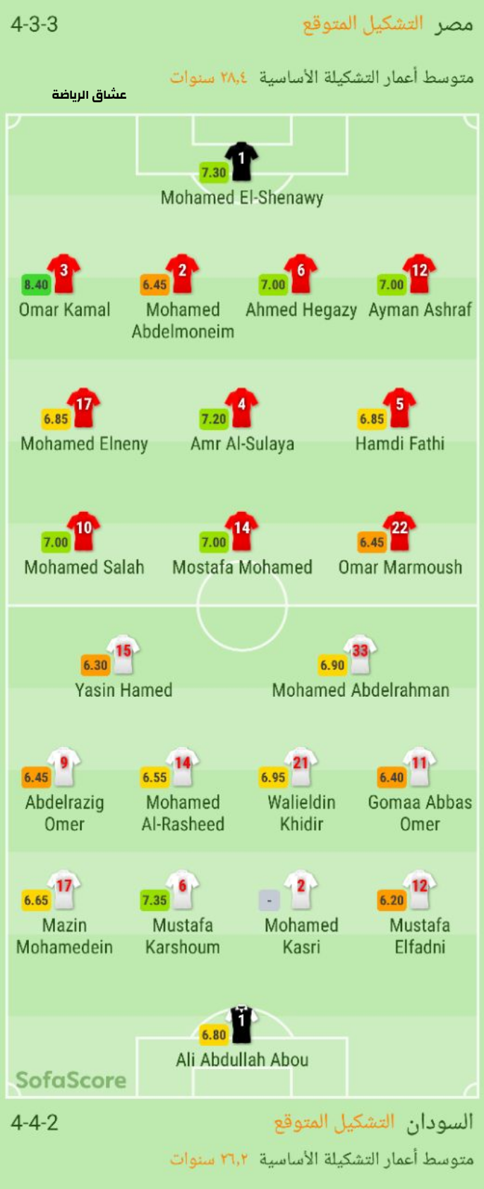 | التشكيل المتوقع لمباراة مصر والسودان اليوم الاربعاء في كأس الامم الافريقية |
