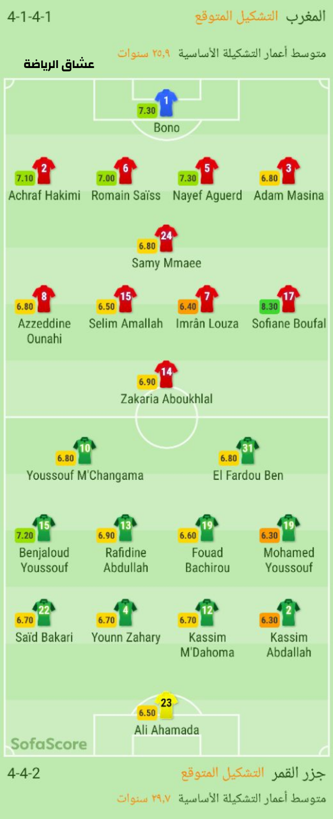 | التشكيلة المتوقعة لمنتخب المغرب وجزر القمر |