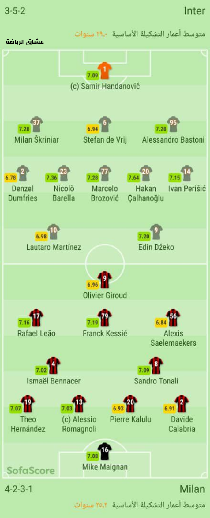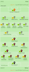 | تشكيلة الفريقين الرسمية انتر ميلان وميلان |